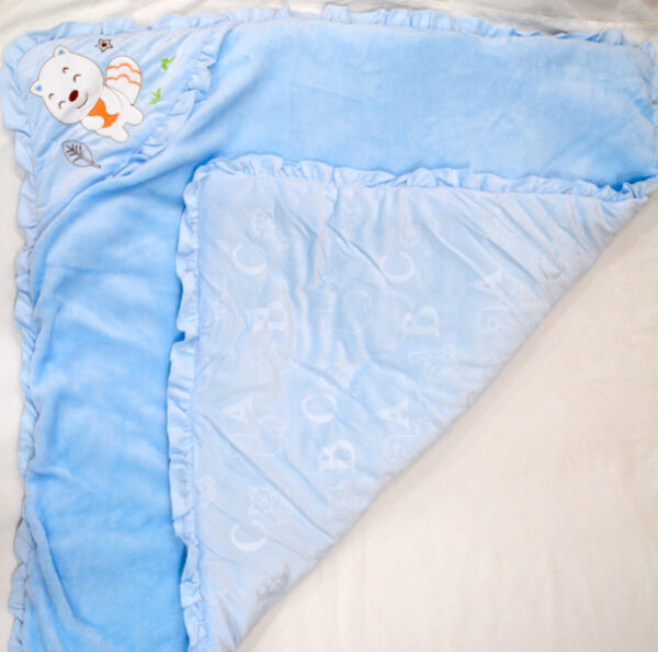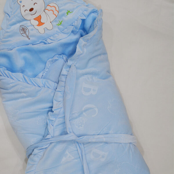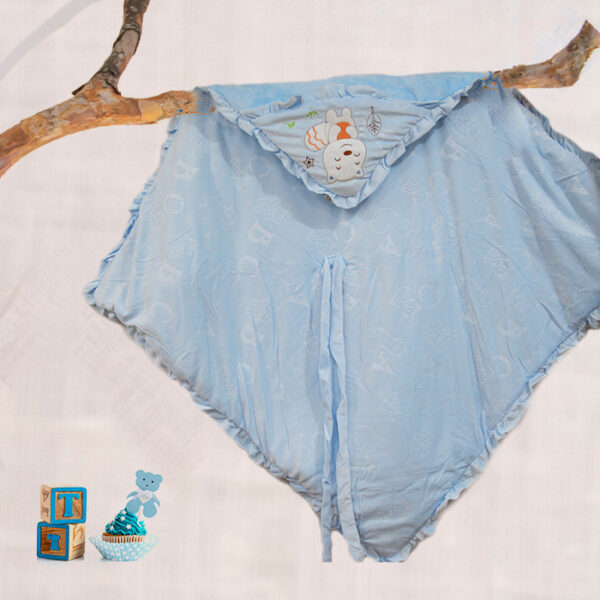 ABC Self Textured Baby Hooded, Quilt – Swaddle with Knot Belt – Blue